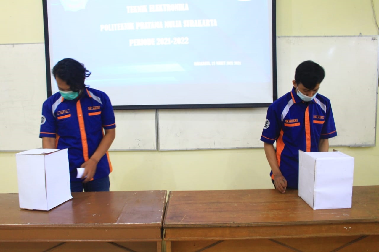 Sabtu, 27 Maret 2021 diselenggarakan acara Reorganisasi Pengurus HMJ Teknik Elektronika, dimulai dengan pemilihan Ketua HMJ PERIODE 2021-2022. Acara dihadiri semua anggota HMJ TE dan Ketua Program Studi Teknik Elektronik, Yaya Finayani ST.,M.Eng. Ada 3 orang kandidat Ketua HMJ yaitu SARWO AJI LAKSONO, SANDIAWAN IHZART CAHYA , BENY SETYAWAN. Setelah dilakukan pemungutan suara terpilih Ketua HMJ TE Periode 2021-2022 atas nama SANDIAWAN IHZART CAHYA dilanjutkan dengan serah terima jabatan dari Ketua HMJ TE Periode 2020-2021 , AGUSTINO ERLANG PRAKOSO.