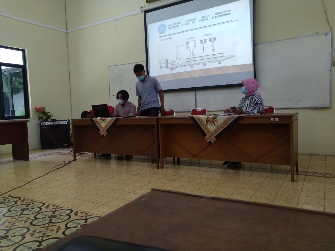Hari ini, Jumat 26 Maret 2021, bertempat di ruang Lab. MP, prodi Teknik Elektronika menyelenggarakan seminar proposal Tugas Akhir. Acara dibuka sekaligus dipimpin oleh Ketua Program Studi, Ibu Yaya Finayani, S.T., M.Eng.