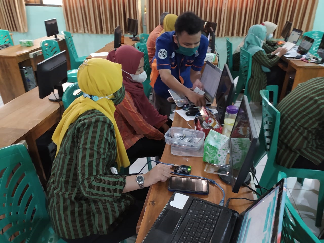 Materi yang disampaikan adalah materi yang sekarang sedang trend di bidang Teknologi Informasi dan Komputer, yaitu IoT (Internet of Things). Dosen Teknik Elektronika dengan dibantu oleh mahasiswa Teknik Elektronika Politama sangat antusias melatih dan men-transfer ilmunya kepada para guru di Jurusan Teknik Komputer dan Jaringan SMK Negeri Jumantono.